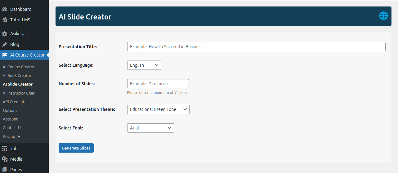 Experience our AI Course Content Creator in action. Click on the thumbnails below to view larger screenshots of our plugin.